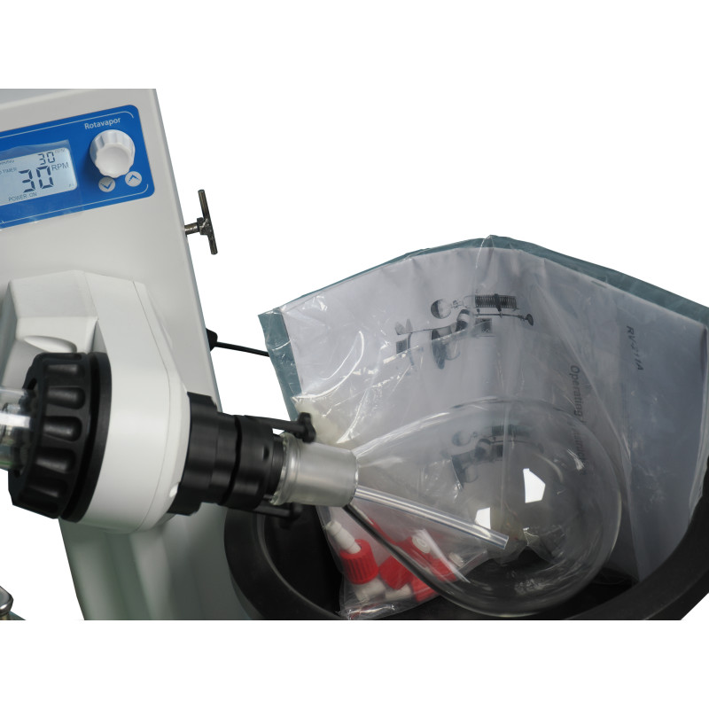 Unit comes with 1L evaporating flask. Flask can be switched to 2L or 3L with standard 24/40 joint, tear shape or round.